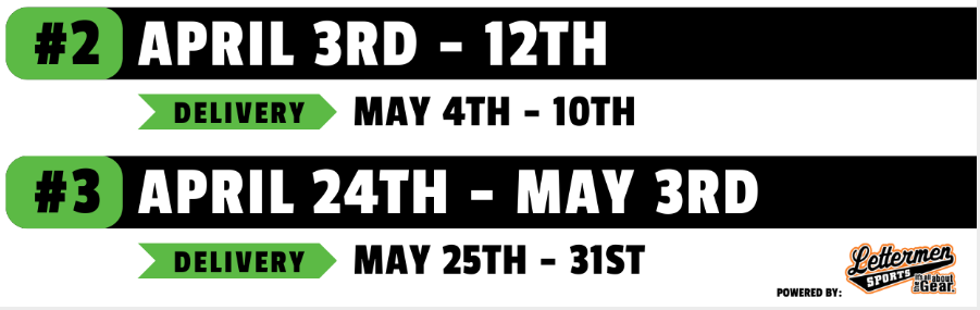 Orders are expected to be around April 22nd before our Westwood Classic Tournament.