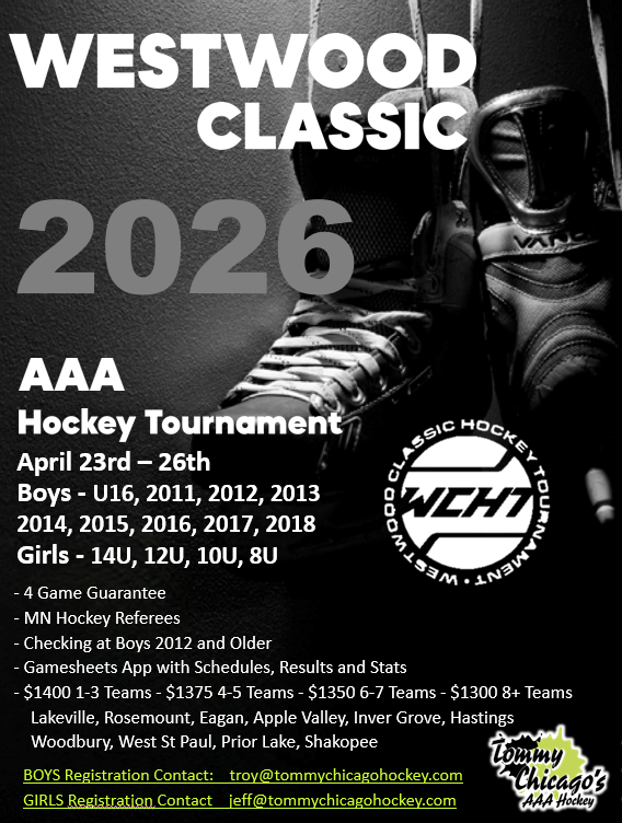 Please Send an Email to westwoodclassic@tommychicagohockey.com with your Levels and Teams you would like to enter and we will confirm back your registrations. Thank You